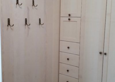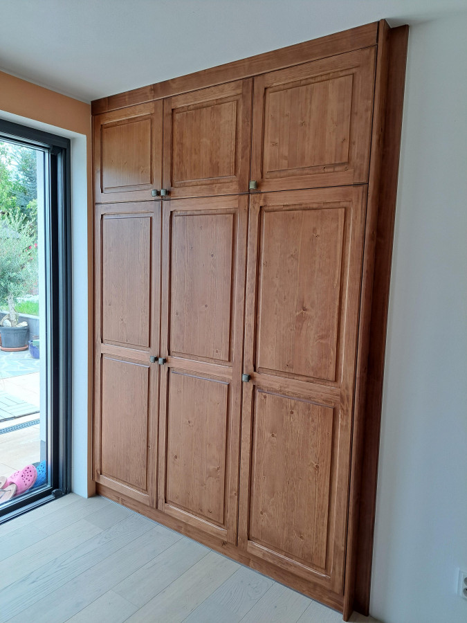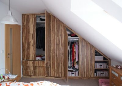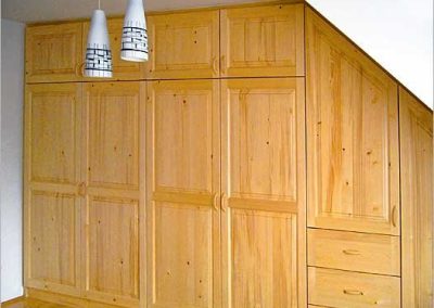 Právě při výrobě vestavných skříní si klademe za cíl maximálně využít prostor, do kterého bude skříň umístěna. Při výrobě skříní používáme různé typy šatních tyčí, drátěných programů, prádelních košů a jiných praktických doplňků, které vám do domu přinesou mnoho ceněného úložného prostoru navíc. Meze se nekladou ani v designu skříně nebo použitém typu otevírání.