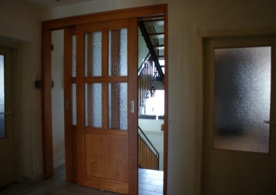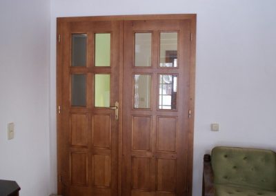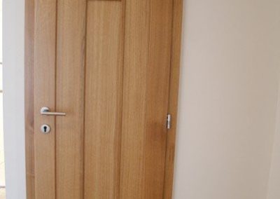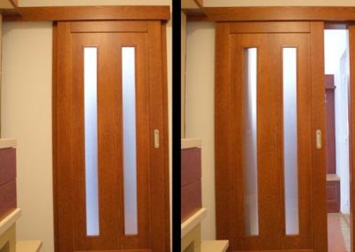 vyrábíme interiérové dveře, standardně v tloušťce 40 mm, na klasických pantech, ale i otáčivé nebo posuvné. Dveře je možné vyrobit i do kovových zárubní nebo s vlastní obložkovou zárubní. I v případě dveří se designu meze nekladou. Máte nějakou konkrétní představu? Neváhejte nám ji sdělit! Pokud ne, rádi vám doporučíme možné varianty a vybereme s vámi tu nejvhodnější.