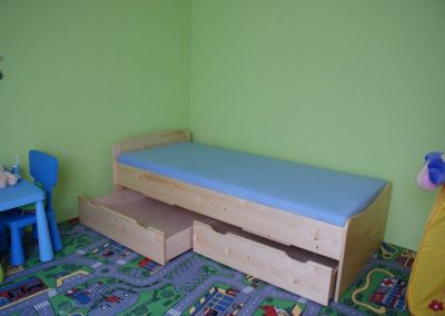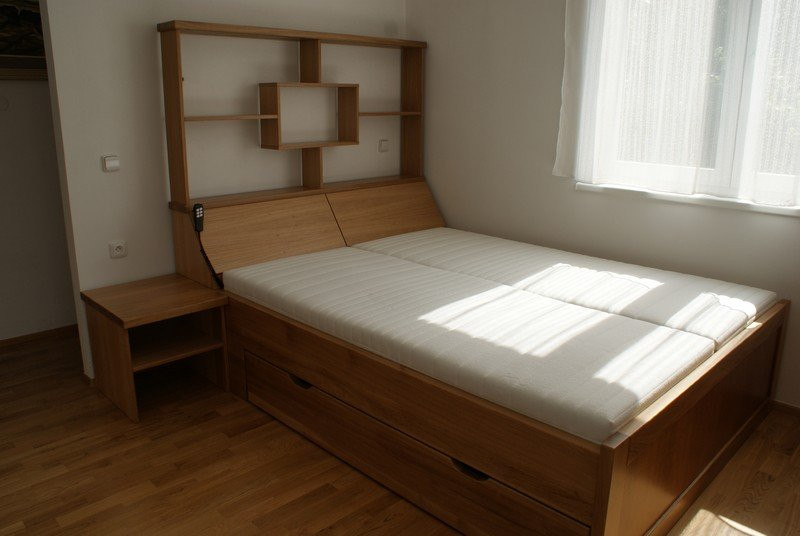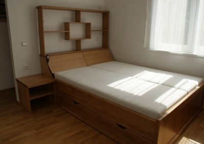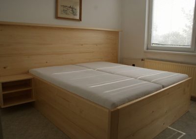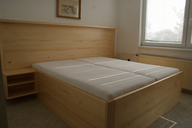 Vyrábíme také nábytek do ložnice, zejména postele nebo noční stolky. K postelím dodáváme také kvalitní lamelové rošty v obyčejném nebo polohovacím provedení. Samozřejmostí je také kvalitní matrace, která zajistí zdravý a nerušený spánek.
