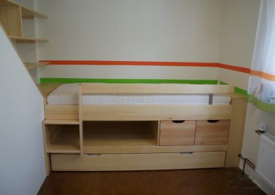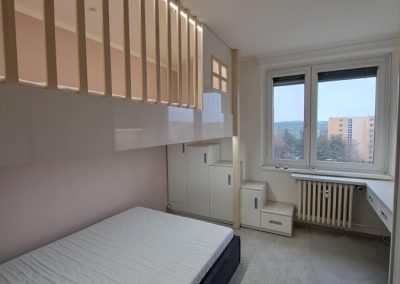 „Naše děti chtěli pokojík. Na základě 3D návrhu a výběru materiálu proběhlo zaměření a násladné realizace. Pecka a děti jsou velmi šťastné. Děkujeme!“