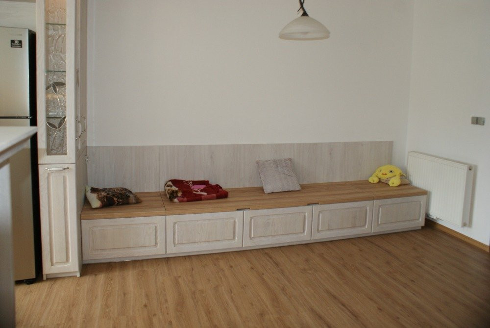 Nábytek na míru dle přání zákazníka. Široké palety barev, možnost odkládacích prostor a mnoho dalšího.